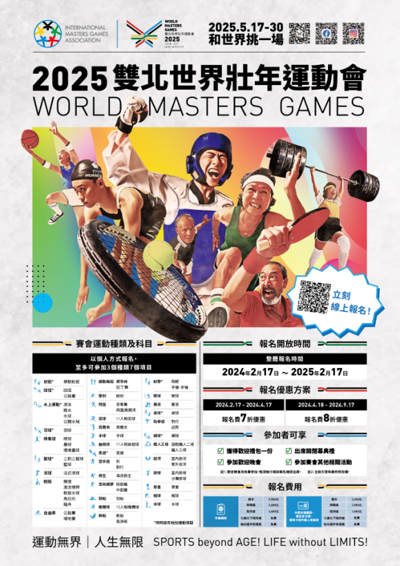 2025雙北世壯運今年2月17日開放報名,滿 30歲即可參賽