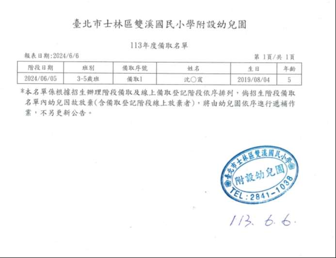 公告備取名單,6月底會通知來學校領取繳費單和開學通知單~